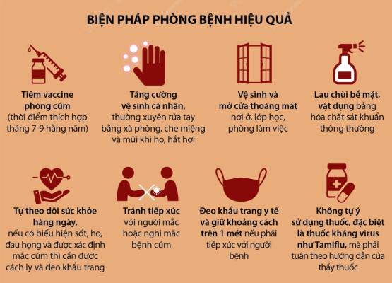 - Tiêm vắc xin cúm mùa để tăng cường miễn dịch phòng chống cúm.