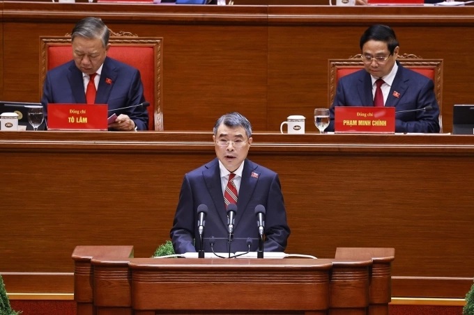 Ông Lê Minh Hưng, Ủy viên Bộ Chính trị, Bí thư Trung ương Đảng, Trưởng Ban Tổ chức Trung ương thay mặt Đoàn Chủ tịch trình bày Báo cáo của Ban Chấp hành Trung ương Đảng khóa XIII về công tác nhân sự Ban Chấp hành Trung ương Đảng khóa XIV.