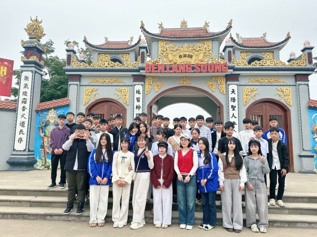 Tại đền, thầy cô và học sinh đã thực hiện nghi lễ dâng hương, bày tỏ lòng thành kính với các bậc tiền nhân. Qua phần giới thiệu, học sinh hiểu thêm về giá trị lịch sử, văn hóa và tín ngưỡng của Đền Lăng Sương – một điểm tựa tinh thần quan trọng trong đời sống văn hóa dân gian Việt Nam, góp phần bồi đắp niềm tự hào dân tộc và ý thức gìn giữ di sản.