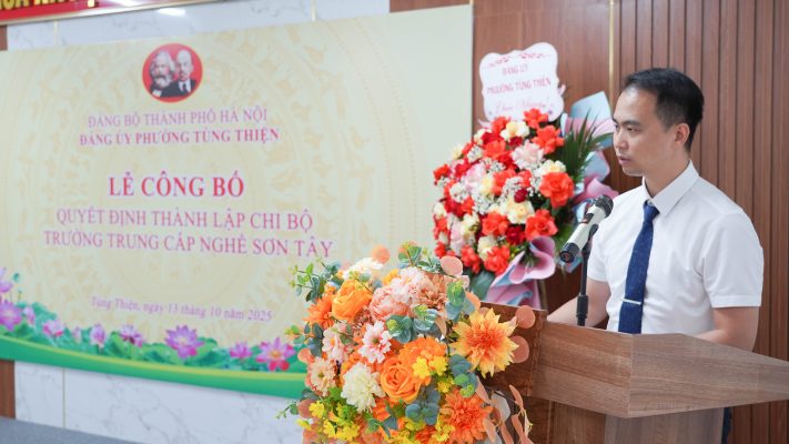 Phát biểu tại buổi lễ, đồng chí Phùng Huy Vinh – Phó Bí thư Thường trực Đảng ủy phường Tùng Thiện mong muốn, sau khi thành lập, Chi bộ sẽ tập trung làm tốt công tác phát triển đảng viên mới, từ đó củng cố, nâng cao vai trò lãnh đạo của tổ chức Đảng trong nhà trường. Ban Giám hiệu nhà trường luôn quan tâm đến công tác phát triển cơ quan, đoàn thể; tiếp tục có chiến lược, đường lối, định hướng đúng đắn để từng nước đưa nhà trường phát triển vững mạnh; đồng thời liên kết với các trường để giao lưu học hỏi, liên hệ với các doanh nghiệp tìm hiểu nguồn nhân lực đào tạo, nhu cầu lao động giải quyết việc làm cho học sinh khi ra trường.