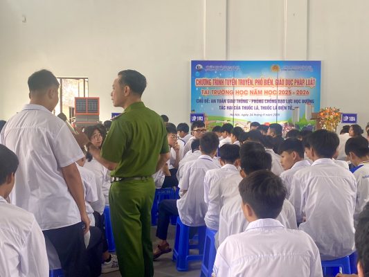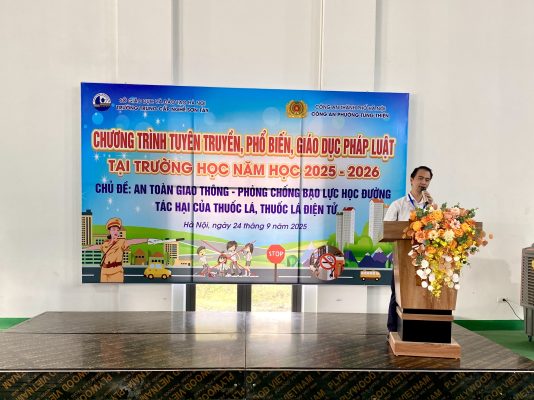 Trước thực trạng đó, sáng ngày 24/9/2025, Nhà trường đã phối hợp với Công an phường Tùng Thiện tổ chức buổi tuyên truyền, phổ biến, giáo dục pháp luật cho toàn thể học sinh. Chương trình tập trung vào các nội dung: An toàn giao thông, Phòng chống bạo lực học đường, Tác hại của thuốc lá và thuốc lá điện tử. Đây là một trong những giải pháp quan trọng, nhằm nâng cao nhận thức, trang bị kỹ năng “tự phòng, tự bảo vệ mình” cho học sinh, góp phần xây dựng môi trường học đường an toàn, lành mạnh ngay từ đầu năm học.