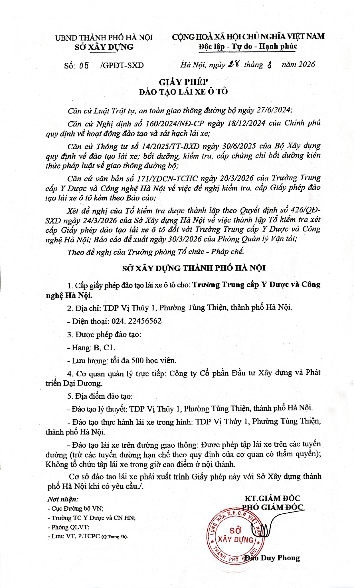 Với mục tiêu đa dạng hóa loại hình đào tạo và đáp ứng nhu cầu thực tiễn của xã hội, Trường Trung cấp Y dược và Công nghệ Hà Nội đã hoàn thiện đề án và chính thức được Sở Xây dựng TP. Hà Nội cấp phép tổ chức đào tạo lái xe ô tô các hạng B và C1.